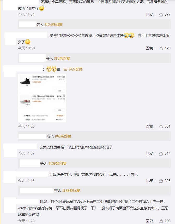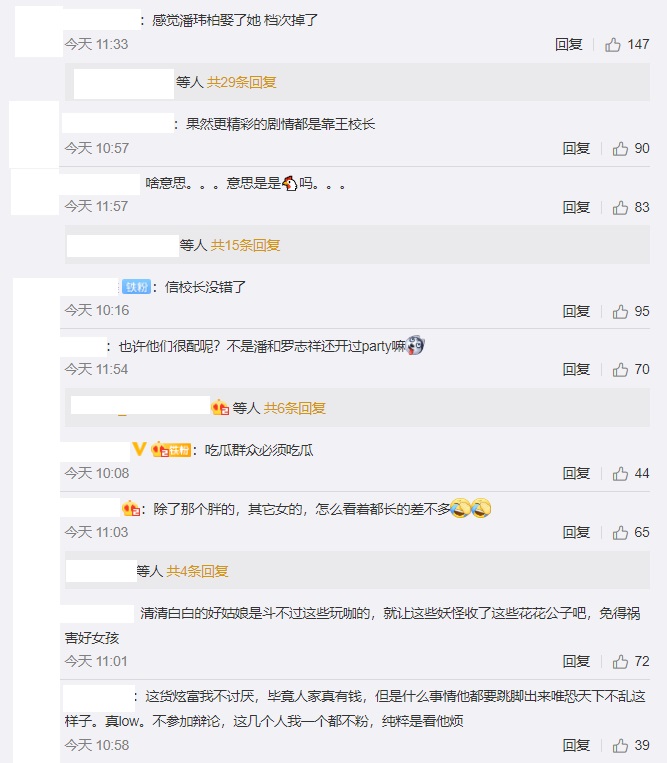 王思聰在朋友圈發文寫道,「我佛了,amy姐還是厲害,身邊兩名大將,一位嫁給天王郭富城,一位嫁給潘瑋柏,太有實力了。」其中一位說的就是潘瑋柏老婆Luna,暗指LUNA的身份有內幕,不少網友看了也都紛紛留言表示,「多年的吃瓜經驗告訴我,王校長爆的料絕對是實錘!」、「小姐嫁給了有錢人上岸了呢!」、「感覺潘瑋柏娶了她,檔次整個掉了」、「果然更精采的都要等王校長」、「人家公布結婚都抵不過他一條朋友圈耶」、「玩咖配玩咖,比比誰更渣」。不過究竟誰是amy姐,網友們至今仍紛紛猜測,認為應該也是一位不簡單的人。