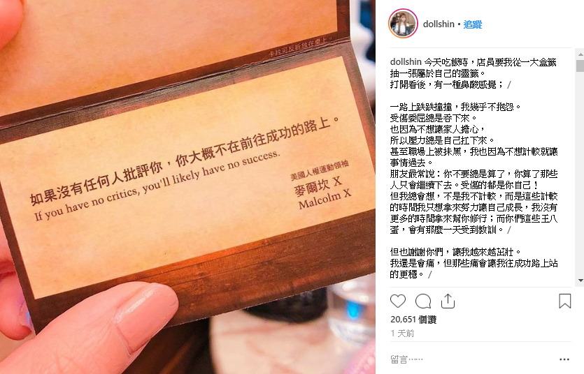 實際上,解婕翎不只是靠著亮眼的外型去圈粉,她也十分用心經營與粉絲的關係,平時的手游代言更是接連不斷,而且去年更是擔任了金鐘的網路主持人,看似順遂的演藝發展,背後其實是有著許多付出的,日前她在YouTube頻道上傳賣命演出的跪主機板影片,就讓許多粉絲為她感到心疼,但也有許多粉絲覺得可悲,到了不自虐就沒人看的地步了嗎?對於這些網路的意見,解婕翎曾經表示過:「謝謝你們,讓我越來越茁壯,我還是會痛,但那些痛會讓我往成功路上站得更穩。只有失敗的人,才有時間批評別人。」