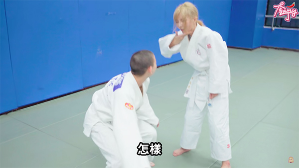 近日奎丁上傳新片,她找到了反骨的「少安」來合作,要來試驗男女體態差異不大的情況下比較過肩摔,看是誰會被摔爆?經過戰前訓練後,兩人透過教練的多次摔打,終於學到了過肩摔的精隨,少安在摔過奎丁後,竟還上癮了上前想摔第二次,不料奎丁在將少安過肩摔時,竟遭到少安「打巴掌」,讓她瞬間傻眼愣在當場,少安隨即趕緊爬起關心有沒有怎樣,所幸就只是打到下巴。