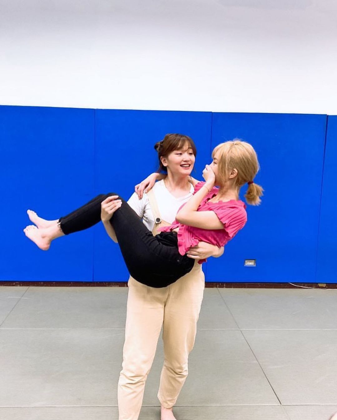 實際上,教練不只教了兩人過肩摔,還加碼教了大外割以及掙脫術,不過兩人體態過於相近,兩人也拉不動彼此,反而變成像是在貼身跳舞一般,在經過一天的學習後,奎丁也像也向粉絲宣導防身術不是要打倒歹徒,而是要給自己有逃走的時間,她同時在社群平台上PO出一張被教練公主抱的照片,直呼被扛起的那一刻,就知道偶像劇是真的,教練帥爆了!