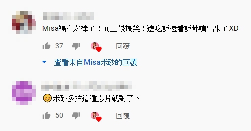 老濕姬影片一出,立刻引來不少粉絲觀看,紛紛留言表示,「Misa福利太棒了!而且很搞笑!邊吃飯邊看飯都噴出來了XD」、「米砂多拍這種影片就對了」、「卡比兔真的很讚」、「YouTube限制了Misa的成長空間」、「這集看起來很危險」、「這集也蠻好看的也很好玩」、「米砂真的很會謀福利」。