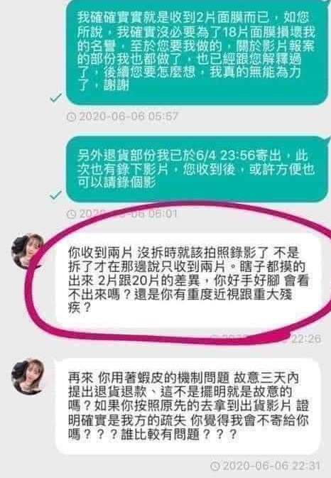 TOP2 斯亞賣面膜遭買家投訴少給18片 怒嗆:「連瞎子都摸得出來」