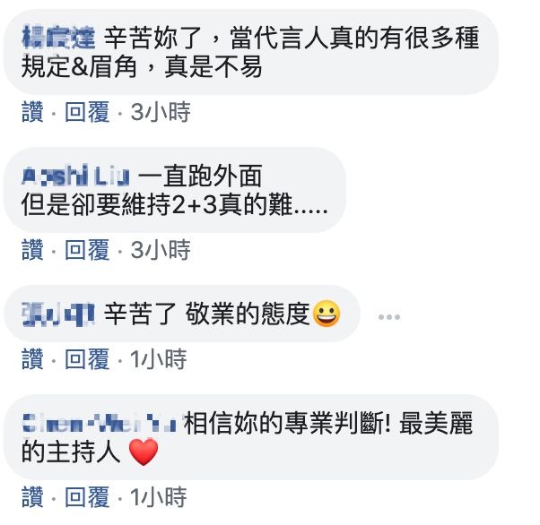 隨文她附上了一張自己的長腿美照,並寫上「有露腿就好了啦~」希望觀眾能夠理解她的苦衷。粉絲們也紛紛留言為她加油打氣:「辛苦妳了,當代言人真的有很多種規定和眉角,真是不易」、「相信妳的專業判斷」、「一直跑外面但是卻要維持2+3真的難⋯⋯」