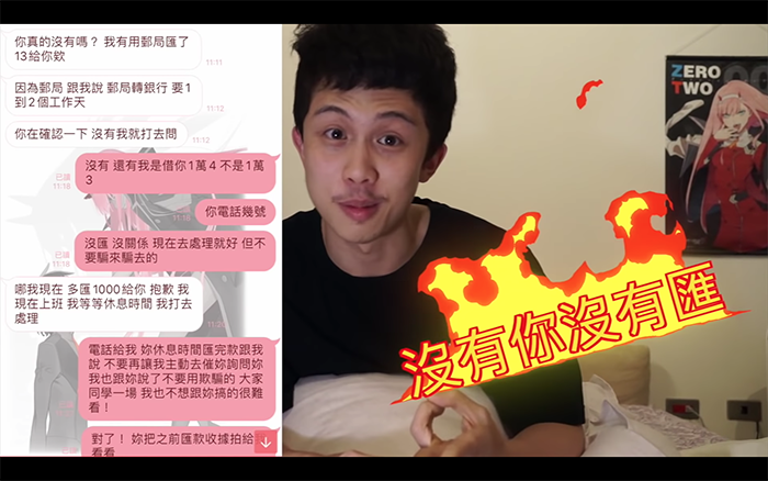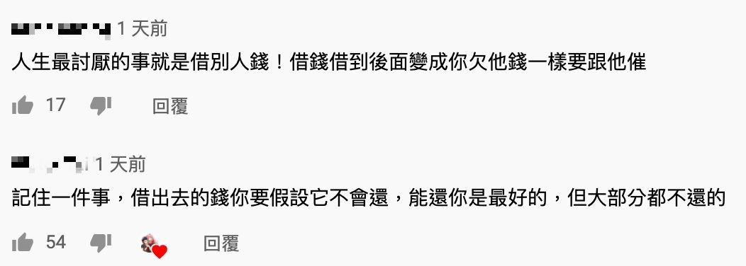 沒想到女同學聽完後毫無歉意,反而還質問約她出來的男同學:「這樣很好玩嗎?」讓孫安佐忍不住繼續怒罵:「我沒有跟你收利息已經算不錯了欸,你不要再旋轉我了好不好?」其他同學也表示對方不只跟孫安佐借錢,甚至還跟老師借錢。最後孫安佐請對方要找一個保人確保會還錢就離開了,但是留在現場的同學卻錄到女同學說:「你等一下就把他糊弄一下就好了」,可見依然沒有要還錢的意思,讓許多網友都十分傻眼,紛紛表示:「借出去的錢你要假設它不會還」、「借錢借到後面變成你欠他錢一樣要跟他催」。