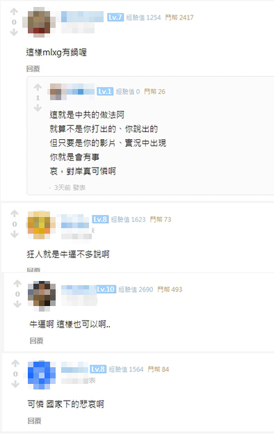 消息一經曝光後,有網友將其轉貼至遊戲大亂鬪論壇,許多玩家紛紛前來留言表示,「這樣mlxg有鍋喔。」、「這就是中共的做法阿,就算不是你打出的、你說出的,但只要是你的影片、實況中出現,你就是會有事。」、「狂人就是牛逼不多說啊。」、「牛逼啊 這樣也可以啊...」、「可憐!國家下的悲哀啊。」。
