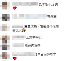 照片一經曝光,短短幾日就有超過4萬人次按讚留言,「夏季感十足 美!」、「有夠襄~」、「看著這件很想去玩水!」、「全集中呼吸!」、「這姿勢治療。」、「8月桌布簽到了❤!」。