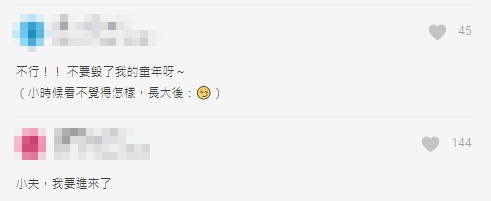 貼文一出,立刻引起一陣熱烈的回響,不少網友也在底下的貼文回覆許多梗圖,吐槽原版的《哆啦A夢》,本來就有許多「兒童不宜」的畫面,紛紛留言「每個都可以幹大事」、「幹大事囉」、「不行!!不要毀了我的童年呀~」、「小時候看不覺得怎樣,長大後:^^」、「小夫,我要進來了」、「你怎麼可以亂用人家的道具 難怪大家都說只有日本小孩能拯救世界」。