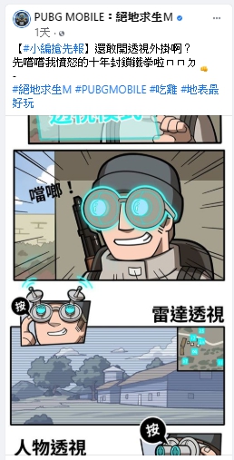 《PUBG MOBILE:絕地求生M》是由騰訊遊戲和 PUBG Corporation 共同研發的手機遊戲,快節奏的遊戲方式,讓玩家能夠享受刺激的槍戰競技。近日官方在FB粉絲專頁上傳了一張反外掛的短篇漫畫,引起許多玩家的熱議!