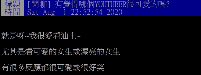 PTT是台灣網友最愛使用的網路論壇之一,其中有各式各樣的話題,吸引眾多網友討論。日前有鄉民在Women Talk版上發問,詢問有沒有推薦可愛、好笑的YouTuber?此文一出,立刻掀起廣大討論,其中網友們最推的就是他們!