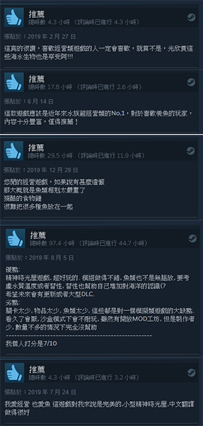 《MegaQuarium》在Steam平台上有著極好的評價,許多玩家紛紛在底下留言,「這款遊戲應該是近年來水族館經營類的No.1,對於喜歡養魚的玩家,內容十分豐富,值得推薦!」、「悠閒的經營遊戲,如果說有甚麼遺憾,那大概就是魚類相剋太嚴重了!殘酷的食物鏈,很難把很多種魚放在一起。」、「精神時光屋遊戲, 超好玩的. 模組做得不錯, 魚類也不是無腦放, 要考慮水質溫度或者習性, 習性也幫助自己增加對海洋的認識(?」、「我愛經營 也愛魚 這遊戲對我來說是完美的,小型精神時光屋!」、「這真的很讚,喜歡經營類遊戲的人一定會喜歡,就算不是,光欣賞這些海水生物也是享受阿!」。