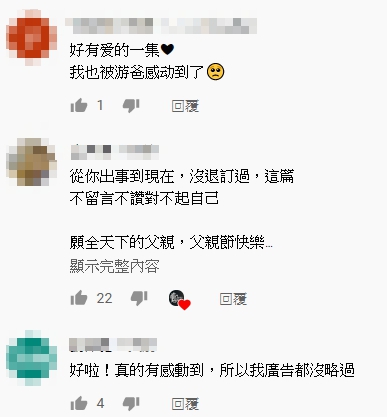 雖然許多人被這部片感動,不過也有人指出,為了父親節企劃,拿家人開這種玩笑並不合適,留言處也出現許多負評。對此游否希則表示,「不管這企劃最後的風向如何,我還是以我父親為榮,家人永遠都是支持我們的那個梁柱,謝謝爸爸!謝謝你們!我會努力熬過這段時間的」。