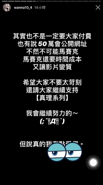 事實上,由於YouTube有黃標機制,因此美麗妄娜先公開「打碼版本」,將無碼版本放到會員頻道中,同時也承諾若此片突破50萬觀看,就會公開無碼影片的連結。不料打碼、付費觀看等舉動仍引起許多負評,對此美麗妄娜也在限動上表示有點受傷,「不是一定要大家付費,50萬會公開無碼網指,不然不可能馬賽克,馬賽克還要時間成本,又讓影片變質,希望大家不要太苛刻,請繼續支持真理系列,會繼續努力的~」。