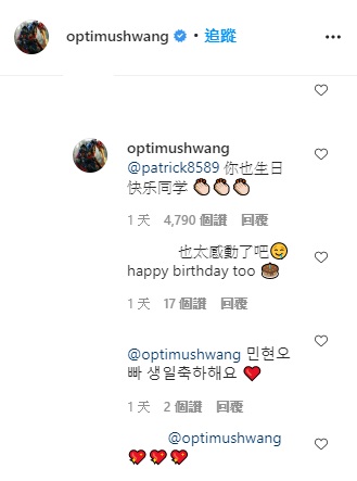 而黃旼炫後來也在IG公開多張制服照,連施柏宇也都來回應祝福他「Happy Birthday」,而對方則是用中文回他說,「你也生日快樂!」在報導中也提到,施柏宇表示,兩人並沒有私交,是透過作品認識彼此,「之前他有預告會翻唱〈想見你想見你想見你〉,也知道生日是同一天,所以就到IG祝他生日快樂~」。