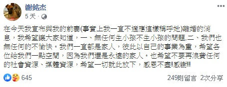 明顯可見,米可白其實是希望能有個小孩子,但是基於謝銘杰一直忙著辦活動,兩人後來都只能各過各的,沒有正常的夫妻生活,甚至也傳出謝銘杰桃花太過旺盛,讓米可白在忙著拍戲的時候只能忍耐,沒辦法對謝銘杰發脾氣!