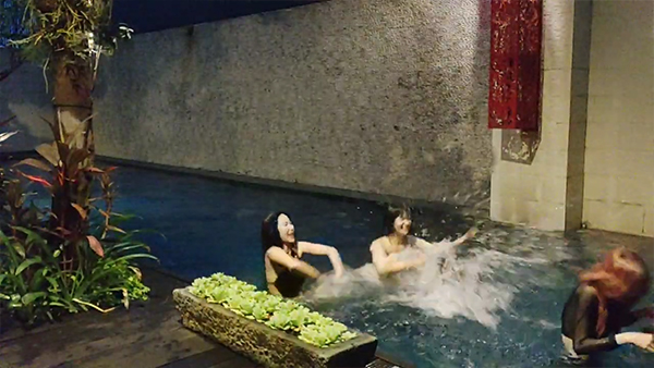 在影片中,可以看到她們圍坐在水邊玩快問快答,渾圓雪白直接面向鏡頭,整個畫面超養眼!消暑的泳池加上滿滿的比基尼,這樣的場景讓粉絲們直呼「咪咪蛋該不會又要來了吧?」,現場有許多勁爆的問題都讓實況主們直接崩潰,要求直接來懲罰潑水吧,寧願胸前濕成一片也不願面對事實,但實況主牛牛妹ㄎㄧㄤㄎㄧㄤ的個性讓她有話藏不住,接連脫口而出許多刺激的答案,像是「貧乳實況主會找蝴蝶!」、「桃園娜美的奶比Baby66還大」,她不加思索地秒答問題,瞬間引爆了聊天室氣氛,讓Baby66的粉絲紛紛暴動。不過現場的其他人則直呼:「心結確立了啦,Baby66的奶比頭還大,整個就是無法掌握、事業線深不可測!」,在活動結束則是在泳池邊互相嬉鬧,不料,牛牛妹和張優兩人雙雙落水,最終妮婭和夜雨也到泳池中參與潑水大戰,激烈的動作讓她們胸前上下抖動猛震酥胸。