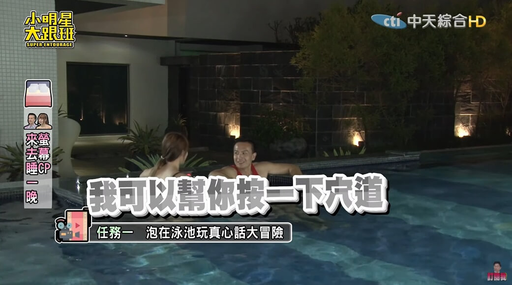 藝人小鐘(鐘昀呈)出道至今也超過了20年的時間,但他依然是黃金單身漢,身邊始終沒有一個人能好好相伴,後來在《綜藝大熱門》節目中跟林莎組成了螢幕情侶,引起相當高的討論!沒想到最近兩人又一起在《小明星大跟班》外景中過夜,兩人不斷手牽手,還在泳池裡公主抱,在床上親密互動、抱緊緊,讓網友們看完都忍不住直呼,「在一起了啦!」