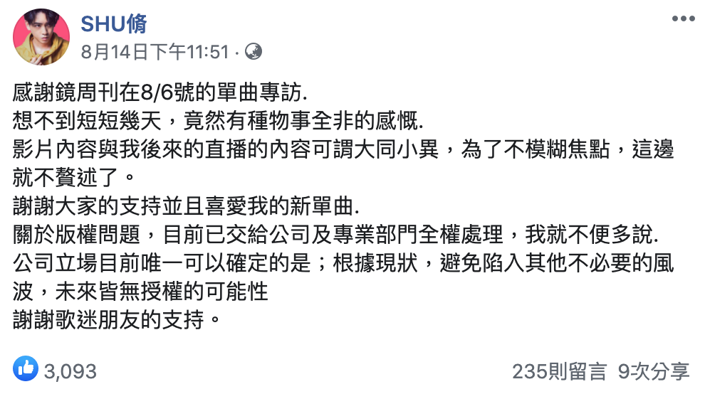 夠愛2.0版權爭議持續延燒!脩翻臉:「無授權可能」 謝和弦:敬請期待