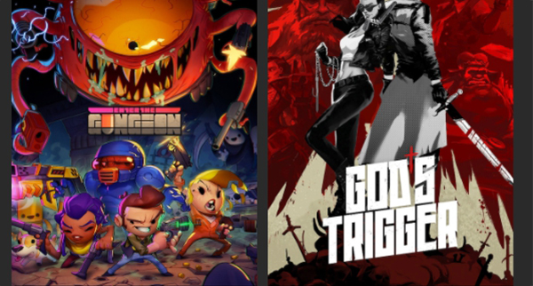 《Enter the Gungeon》是一款彈幕地牢冒險遊戲,玩家將扮演英雄前進地牢中,運用各式道具及閃躲技巧來通關,直到玩家拿到終極寶藏。通過挑戰魔王,可以收集珍貴的掠奪品,途中也會遇到神秘商人能購買特殊物品來增強自身,這款遊戲可以單機進行,也可以多人連線進行通關。《God's Trigger》是一款射擊闖關遊戲,利用各式神兵利器以及環境去擊殺敵人,單機模式時可以自由切換兩位英雄使用,或是兩人連線一同努力。