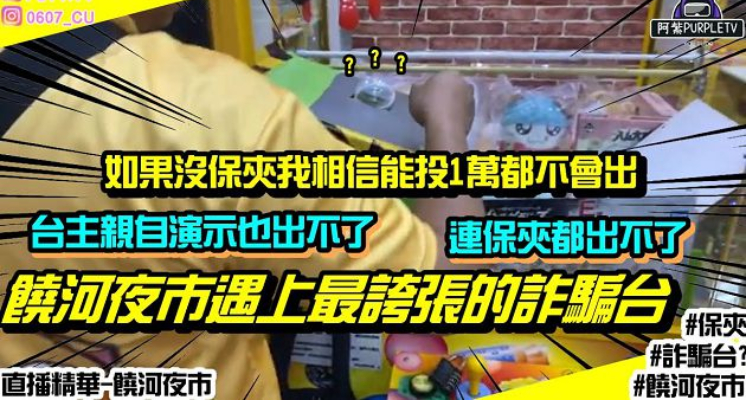 專門做夾娃娃實況的YouTube頻道「阿紫Purple Tv」,日前上傳了一則關於夾娃娃機台詐騙的直播精華,影片中可以看見阿紫和啾咪怎麼也沒有辦法將轉蛋滾入洞口,當他們付出的錢達到保夾金額之後,依然無法將轉蛋順利夾出,這個疑似詐騙的機台讓他們氣炸,決定找台主來到現場。