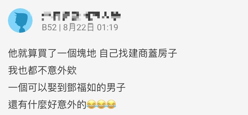 事實上HowHow在去年與歌手鄧福如(阿福)結婚後就買了新家,鄧福如在今年5月還曾經po出新家裝潢的照片,可見入住18億豪宅只是空穴來風。不過也有網友表示「他就算買了一個塊地、自己找建商蓋房子,我也都不意外欸。一個可以娶到鄧福如的男子,還有什麼好意外的?」