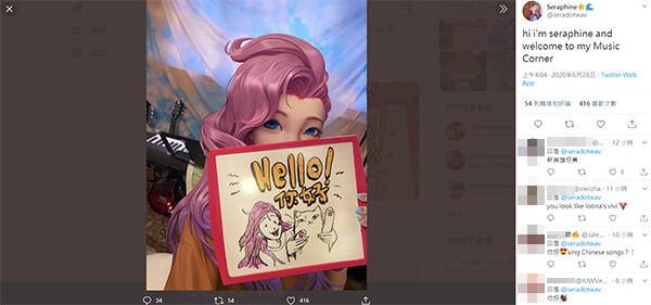 近日該名巴西網友繼續爆料,她表示登場的英雄將會是一名中路法師「Seraphine」,而且這隻英雄還在今年6月擁有Twitter以及IG帳號,在社群平台上有著許多的日常生活照片,就像是一名真正的歌手一般,Seraphine曾被問及是否喜歡英雄聯盟,她的回答則是:「對,我喜歡。」,而且她翻唱的歌曲也被找到與Riot 在S10世界賽中達成合作的蹤跡,玩家紛紛猜測會隨著《英雄聯盟》的虛擬女團 「K/DA」的活動一同進入玩家的眼界。