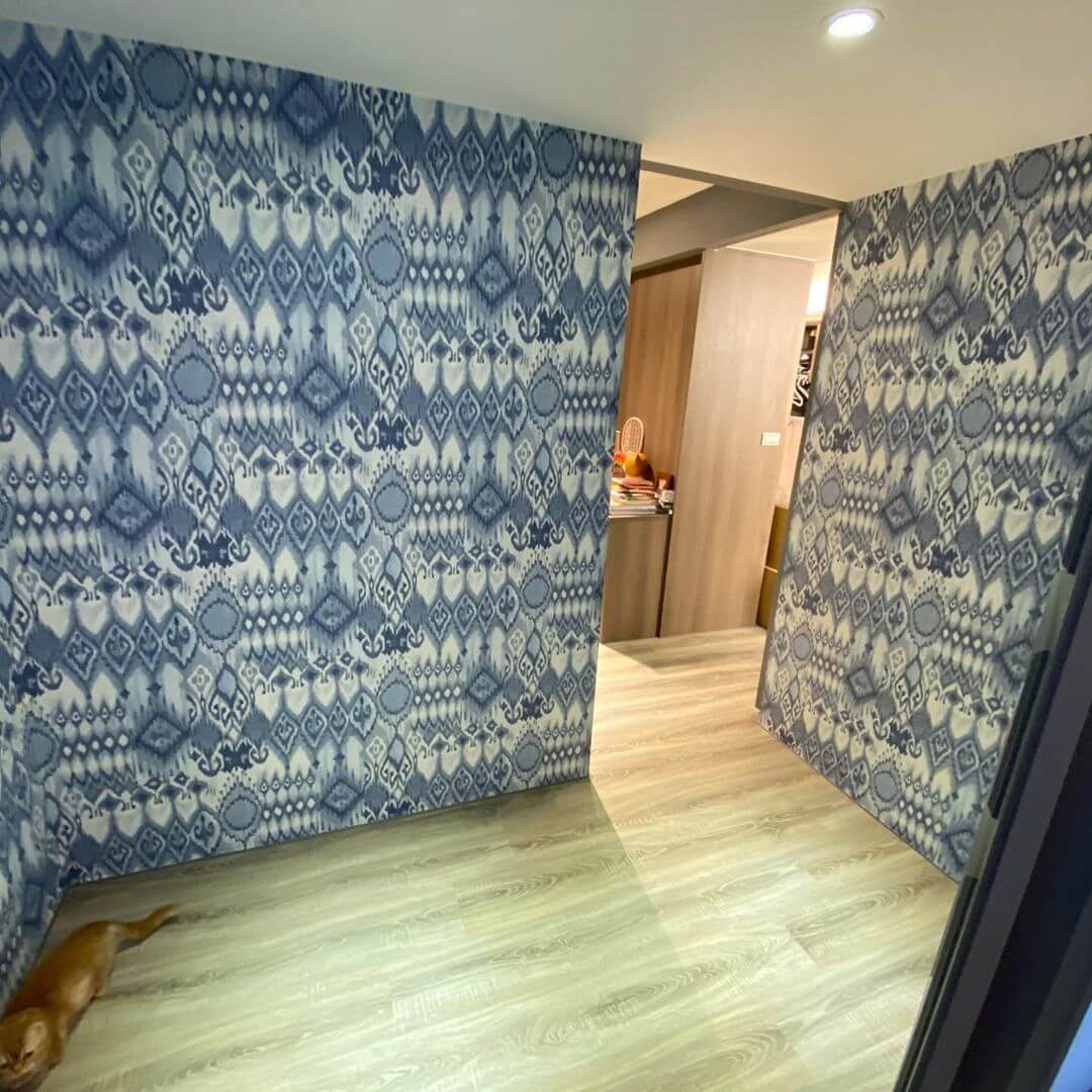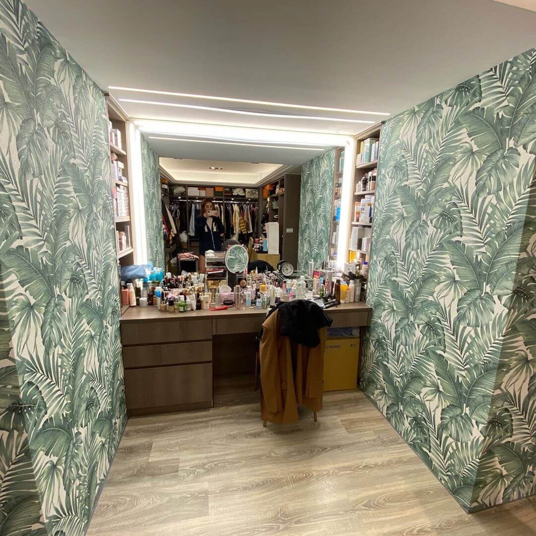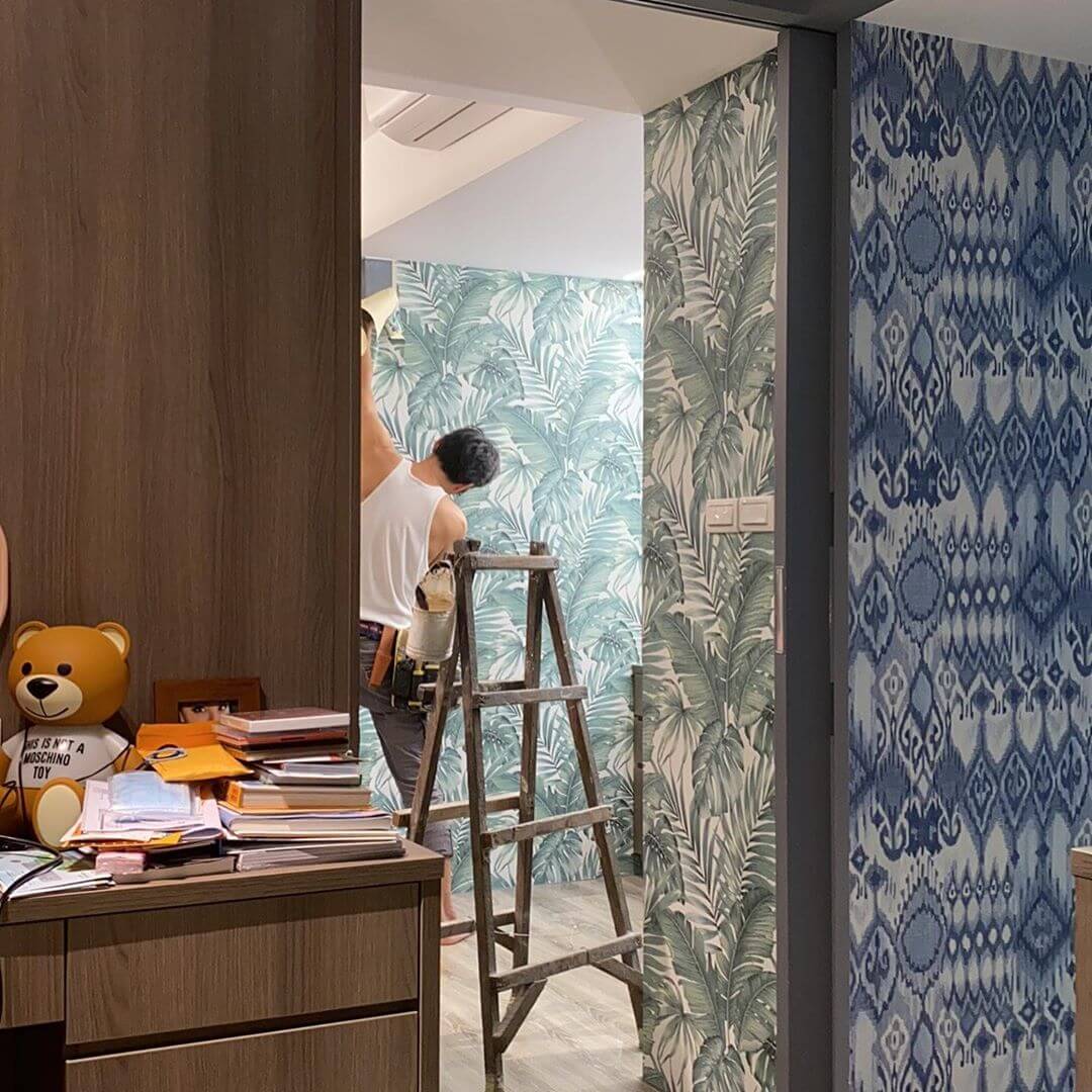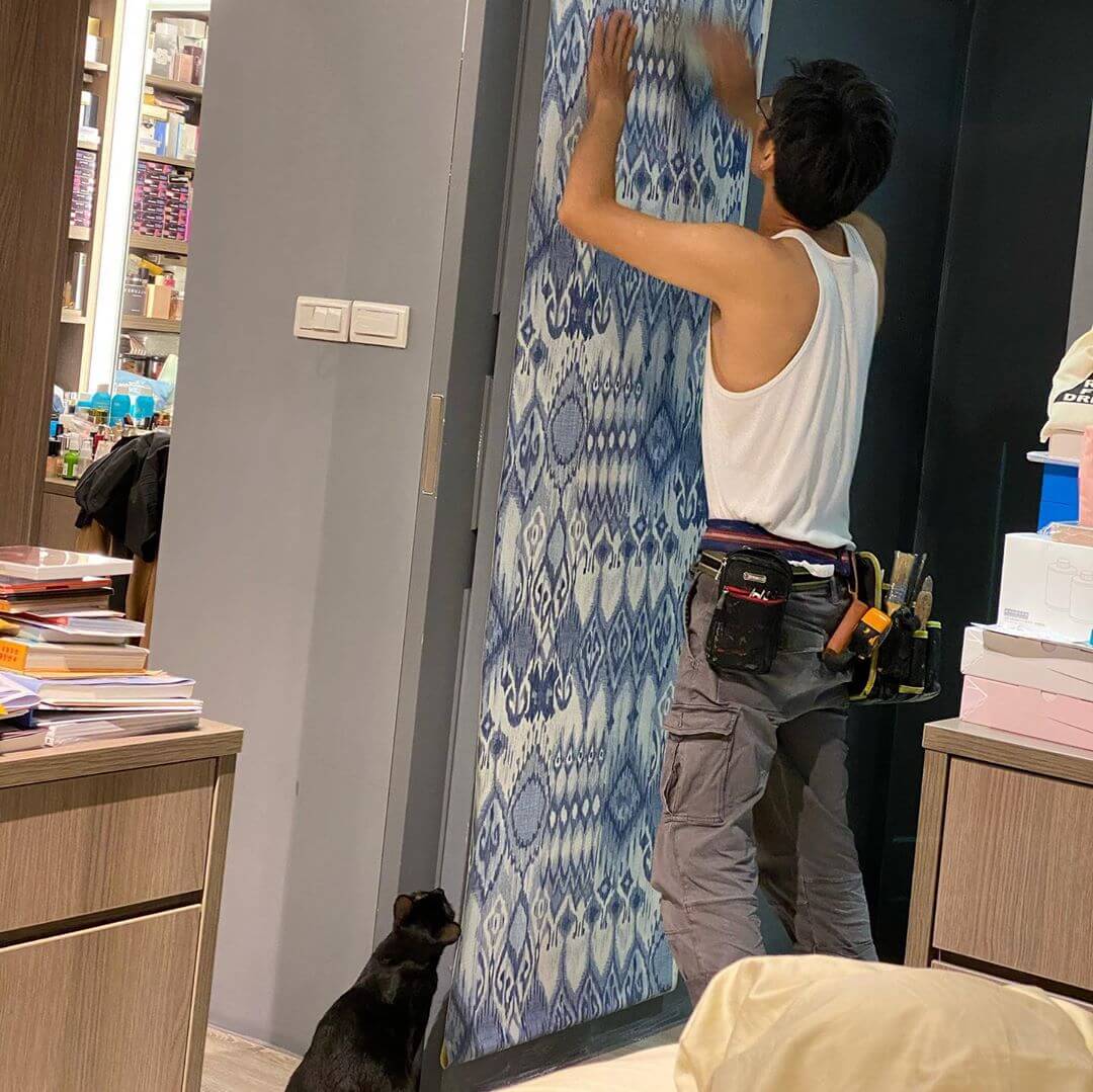 小禎最近在IG上發文曬出一系列住家內部的裝潢照,並且興奮的寫道,「家裡貼壁紙…想來個煥然一新的港(感)覺~」,從照片中可以看到,家裡原本是好幾面灰牆,雖然顏色很單調,卻看起來相當有格調!後來又經過師傅的巧手,換上了綠色及藍色花紋的壁紙,馬上整個家轉換成「渡假風格」,讓小禎心滿意足的說,「以後在家拍照也可以很網美~」,而幽默的她也跟師傅開玩笑說,「師傅聽說是壁紙界的劉德華,這樣的吊嘎也是滿性感的!」。