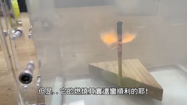 影片最後他們還測試了「防水火柴」,想知道火焰的燃燒能抵禦真空環境到甚麼程度,只見他們點燃火柴後迅速開啟幫浦,氣壓雖然不斷降低,但防水火柴仍然沒有停止燃燒,火柴最後完全燃燼,不受真空環境的影響。