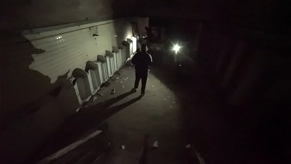 Night Scape就這樣和一群好友爬進人孔蓋中,僅使用手機當作探照燈,就這樣開啟了這趟冒險之旅。她們將孔蓋恢復原狀後,發現有著許多現代化的廢棄建設,從畫面可以看到窗戶玻璃上甚至還留有彈孔,而牆壁上寫有「5號拱門」的標誌,大量斑駁的牆面以及一整排的破舊小便斗,讓氣氛更顯詭異,重複不斷出現沒有門的空房間,讓眾人的焦慮情緒不斷累積,就在這時,後頭不明位置傳來了一聲巨響,讓現場所有人都嚇了一跳,在接下來的路途中依舊不斷傳來古怪的聲響,讓他們無法安心繼續進行探險,且不斷疑惑地詢問彼此,「剛剛聽到了嗎?又有奇怪聲音...」,最後全部人決定原地停下腳步尋找聲音的源頭,確保不是自己太緊張而幻聽,就在這時寂靜的空間傳來清晰的呼氣聲,讓眾人都十分驚慌,在彼此打氣下,他們進行了第二次嘗試,但是卻發現聲音變得更近了,讓眾人嚇得決定直接原路落跑!