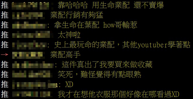 PTT文章一出,立刻有不少網友回覆,「這樣都被你發現XD」、「厲害了!都只打到手跟腳非致命」、「這符咒真神,真的可以閃子彈」、「用生命業配太強了」、「準備大賣!護國神服」、「真的用生命在業配」、「盡責的代言人」、「史上最玩命的業配,其他youtuber學著點」。據了解,館長在今年3月,取得《鬼滅之刃》授權,開發簽約聯名款系列,這次館長遇害身上還穿著鬼滅衣服,讓不少粉絲直呼等商品上市,一定要買來留念!