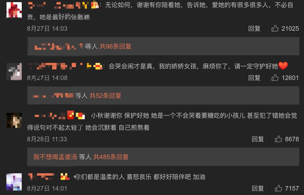 張靚穎在2016年與少城時代執行長馮軻結婚,兩年後宣布離婚,過後就與小提琴家陳秋蒔爆出緋聞,而陳秋蒔也被網友翻出曾在張靚穎的婚禮上擔任伴郎,與表演中唱到的歌詞吻合。陳秋蒔的長文不僅透露了許多張靚穎私下的狀態,更因為提到「她每天很晚睡」而被大眾懷疑兩人是否正在同居,雖然他們尚未正式回應戀情,不過陳秋蒔的濃濃愛意已經感動了不少網友,紛紛在文下留言「謝謝你陪伴她」。