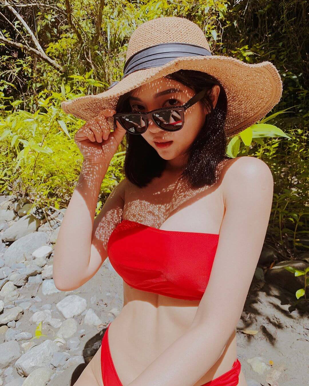 何美最近在IG上發文曬出一系列的美照,並在貼文中寫下,「求訂閱Youtube!」從照片中可以看到,何美在溪邊附近,穿著性感火辣的大紅色比基尼,頭戴草帽跟墨鏡,散發出放鬆又愜意的氣息,而胸前的布料似乎快要包不住豐滿的上圍,讓半球隱隱約約露了出來~