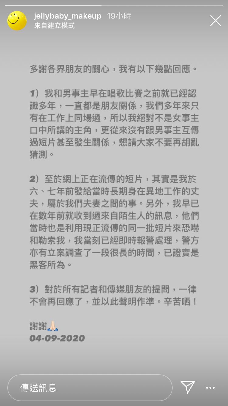 香港DJ爆偷吃到「小四」還染病! 女方否認介入:「短片是夫妻之間的事」
