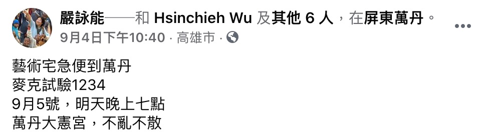 本土創作樂團「打狗亂歌團」的主唱嚴詠能4日晚間驚傳猝逝,當時他在屏東縣萬丹鄉的大憲宮進行演出,表演到一半突然昏倒,送醫搶救後仍宣告不治,享年50歲。嚴詠能生前致力於深耕台語音樂,還曾為蔡英文總統寫競選歌曲,死訊傳出後陳其邁、蘇貞昌等政治人物都發文哀悼,也讓不少歌迷十分震驚不捨。