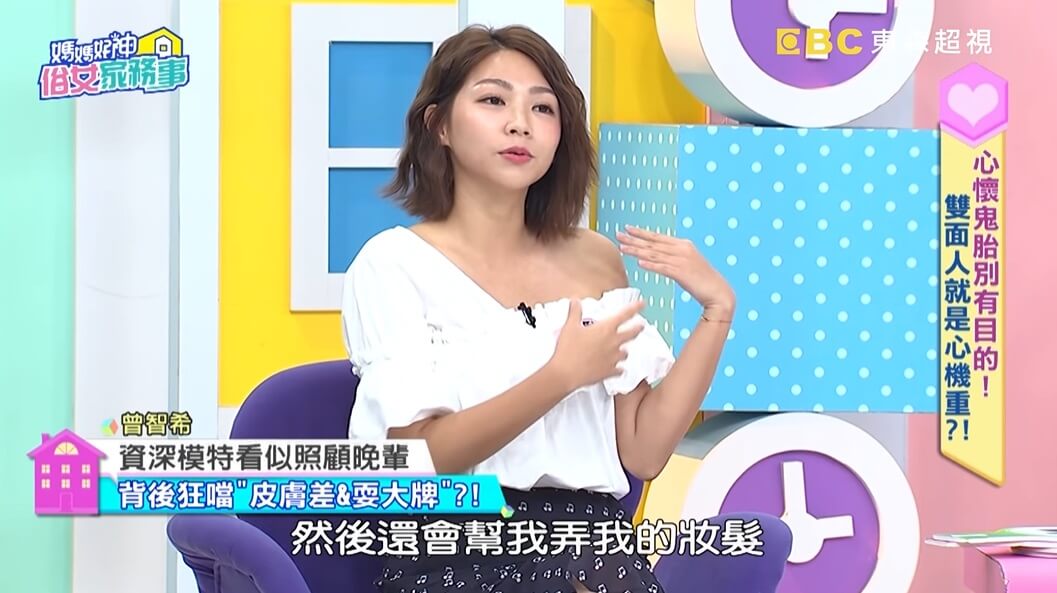 曾智希最近在《媽媽好神之俗女家務事》節目中,因為大家聊到了關於雙面人的話題,讓她不禁回憶起當初自己還在當平面模特兒時,遭到雙面人前輩惡意中傷的事情!她表示,當時接到一個蠻大的服飾品牌邀請,跟學姊一起去拍他們家的目錄,因為曾智希還沒有跟資深的模特兒一起工作過,所以當時非常緊張,不料,「一起工作後發現,這位學姊根本是天使來著的,她會幫忙看穿搭、搭配,還會幫我弄妝髮,借我飾品,整個人超好的!」