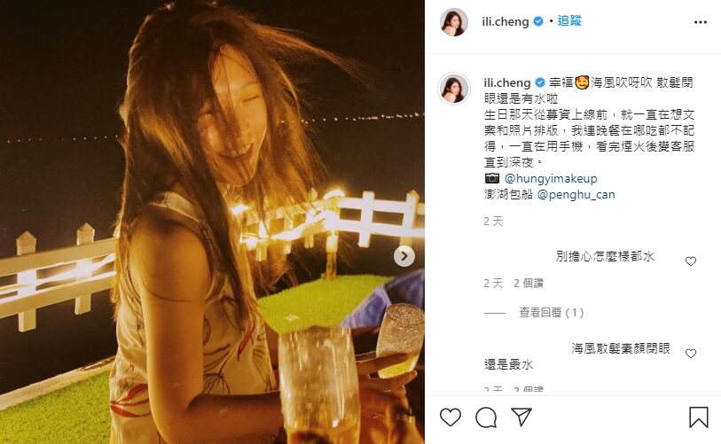 雞排妹最近在社群平台上發文曬出多張出遊的照片,並在貼文內容中寫道,「幸福!海風吹呀吹~散髮閉眼還是有水啦!生日那天從募資上線前,就一直在想文案和照片排版,我連晚餐在哪吃都不記得,一直在用手機,看完煙火後變客服直到深夜」。而她也提到這一次的慶生是包船體驗,在船上幸福的喝著香檳,讓不少人很是羨慕!