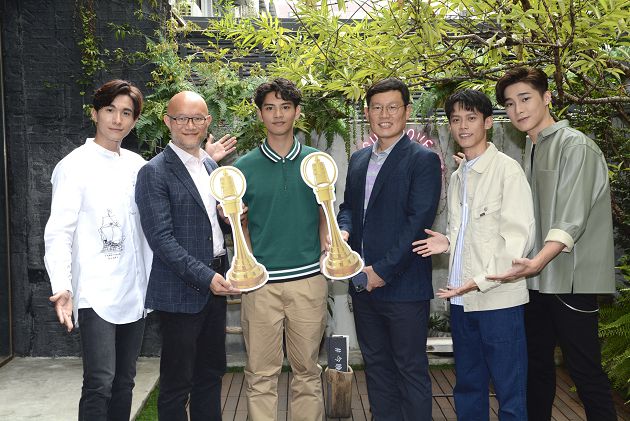 由巧克科技新媒體製作出品、LINE TV播映的《HIStory3-那一天》將製作規模從「迷你劇集」再提升,去年10月開播掀起討論熱潮,至今已累積超過600萬流量,飾演孫博翔的22歲劉韋辰,更獲第55屆金鐘獎「最具潛力新人獎」入圍肯定,也是LINE TV首度入圍的戲劇節目類獎項。今(17日)《HIStory3-那一天》兩對超人氣CP宋偉恩、黃雋智、張瀚元、劉韋辰再度合體現身集氣,演員們還送上象徵好運的「紅內褲」,LINE全球事業拓展部資深副總裁、巧克科技新媒體董事長姜玄玭,巧克科技新媒體暨LINE TV執行長陳立人也特地前來送上「大金鐘」,預祝劉韋辰順利敲響金鐘。