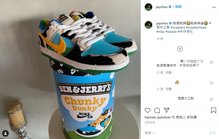 而周董除了愛車之外,他也喜歡收藏球鞋,像是最近他也有在社群平台上曬出一雙還沒開賣就已經造成轟動的球鞋,也曾曬出一雙要價10萬的Dior聯名款球鞋,可以說是什麼新款潮鞋他都有,讓不少鞋迷們看了都超羨慕,還封周董為「演藝圈最狂鞋頭」!
