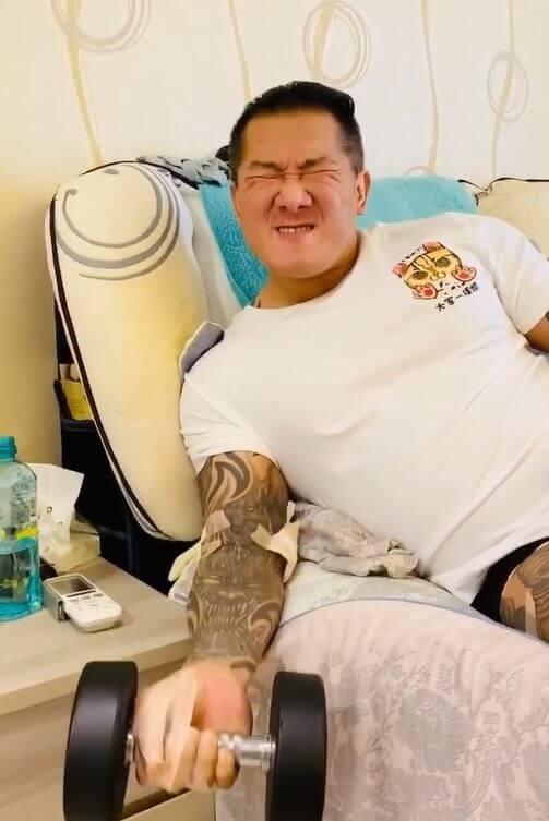 體重增加之後,館長也跟大家示範他在出院第8天的恢復狀態,目前已經可以舉起8公斤的壺鈴,還可以用彈力帶了,他也提到,「每天都會重複電療、泡熱水、抓東西訓練」,雖然過程非常痛苦,但他會努力把痛苦、怨恨化為力量,並透露自己在中槍之後,因為有了充足的休息跟睡眠,整個人氣色變很好。此外,館長先前也曾在床上舉10公斤的啞鈴拍片過,讓大家都意外的認為他恢復的速度真的很快!