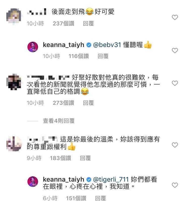 謝和弦在19日剛辦完自己的演唱會「2203回來到」,他曾多次表示希望趕快完成離婚手續,想早點把女友莉婭娶回家,但現在Keanna又跳出來反指是謝和弦抹黑,讓網友霧裡看花。不少網友都對KT的貼文表示支持:「這是妳最後的溫柔,妳該得到應有的尊重跟權利」、「好聚好散對他真的很難欸,每次看他的新聞就覺得他怎麼過的那麼可憐,一直降低自己的格調」、「一直都相信你」。