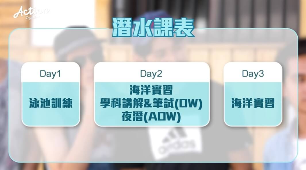圈內不少藝人都是潛水愛好者,傅孟柏、徐鈞浩在最新一集網路實境節目ActionTogether中也帶著同門師兄弟一起挑戰潛水,經紀公司齊心娛樂還秘密邀來現正熱映口碑爆棚的愛情喜劇電影『消失的情人節』女主角李霈瑜大霈作為嘉賓。