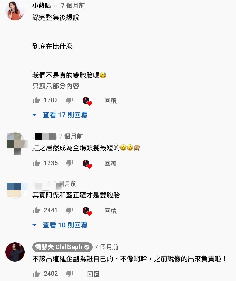 結果沒想到不管是真的雙胞胎還是假的雙胞胎都沒什麼默契,比賽進行到一半兩隊都還是零分,讓小熱唱崩潰:「我們不是真的雙胞胎嗎?」喬瑟夫與阿傑在影片中賣力模仿彼此,事後喬瑟夫表示:「不該出這種企劃為難自己的,不像啊,之前說像的出來負責啦!」阿傑則留言「這集請到動力火車」,有網友認為阿傑跟藍正龍比較像雙胞胎,也有人表示喬瑟夫的雙胞胎應該是Howhow才對。