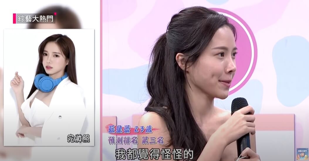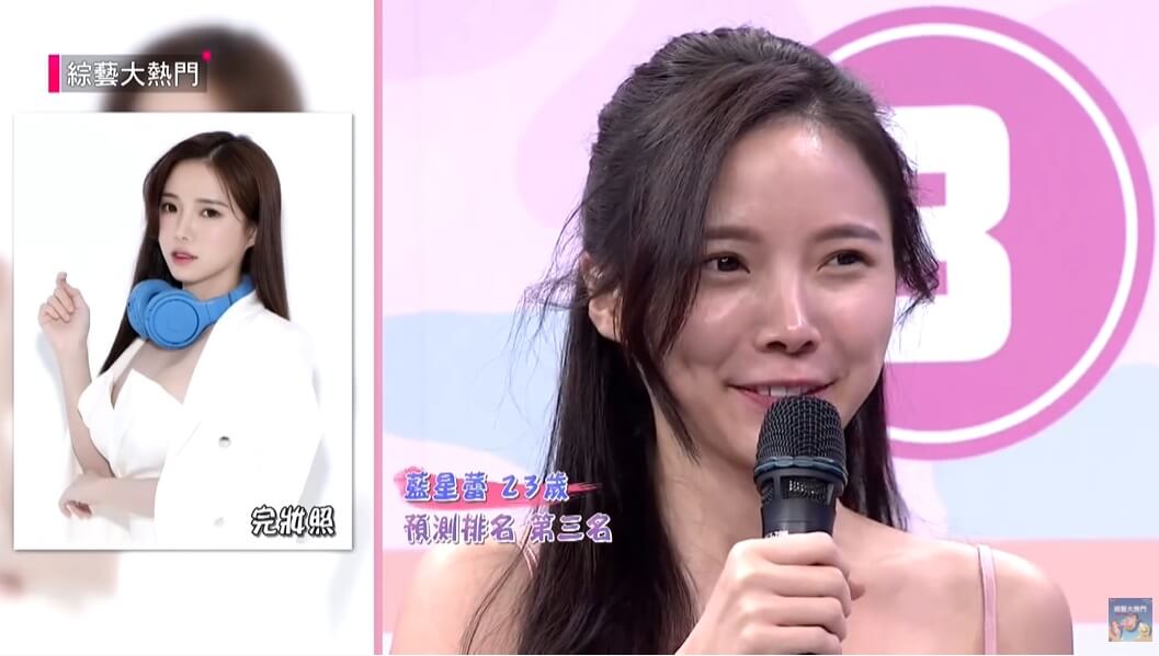 其他來賓現場看到藍心蕾素顏的模樣,也對她無暇的膚況感到非常不可思議,紛紛驚呼,「完全沒差!好可怕!」後來她也順利榮登「素顏冠軍寶座」,讓她開心的在IG發文寫下,「謝謝大家給我第一,我會繼續好好保養的!」