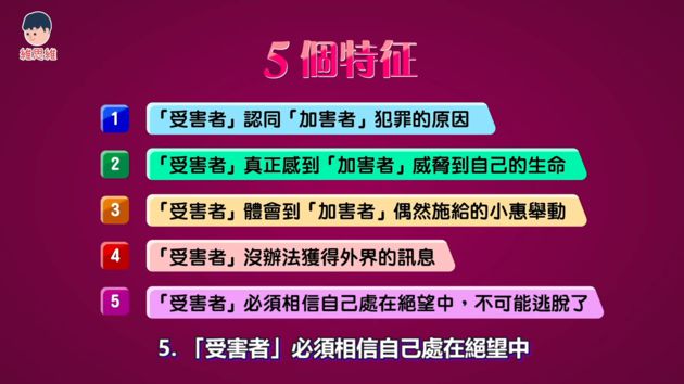 網紅「維斯維」擅長以圖文講解特殊的文明病或是心理現象,他表示「斯德哥爾摩症候群」是指被害者會對於加害自己的人,產生情感的一種現象,會同情和認同他們的觀點和想法,甚至會替綁架自己的人說話,而這種心理現象又稱作「人質情節」。