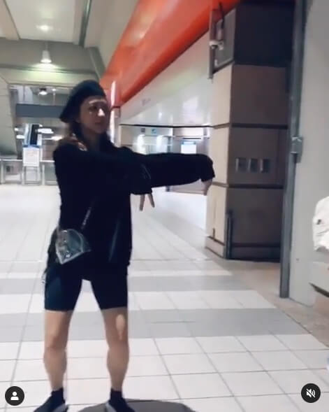 周曉涵最近在IG上發文貼出了一段影片,並在貼文內容中寫下,「恥度大開!隨便來一下,士林捷運站挑戰Lisa螃蟹舞~還好沒什麼人!」從影片中可以看到,周曉涵綁著雙馬尾,身上穿著全黑的上衣跟貼身短褲,帶著黑色貝雷帽,在士林捷運站外面走著走著,沒想到下一秒突然就開始在鏡頭前跳起了當紅的「螃蟹舞」!