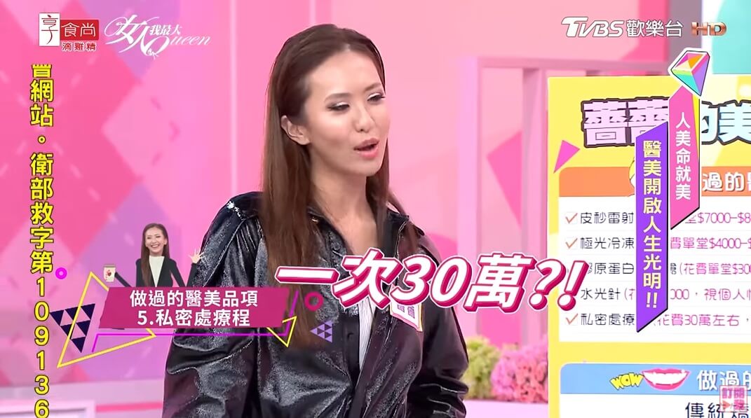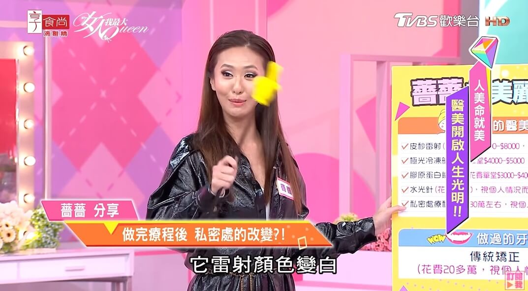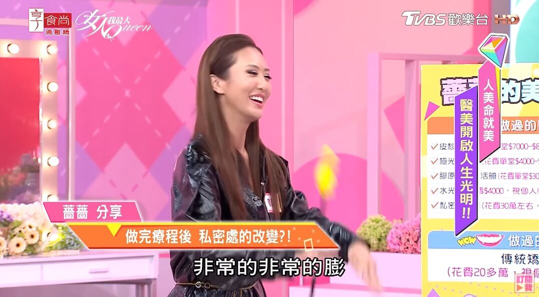 此外,薔薔也透露,當時她是做了很多個項目,後來認真殺價才砍到全部30萬,並解釋她之所以會想嘗試私密處的療程,「是因為可以改善私密處黑色素沉澱,還能讓形狀變得比較澎潤!」還說有很多婦產科醫師也有做,做了比較不會讓婦女病發炎,不過薔薔也強調,「做完有兩週的修復期,這段時間盡量停機比較好!」