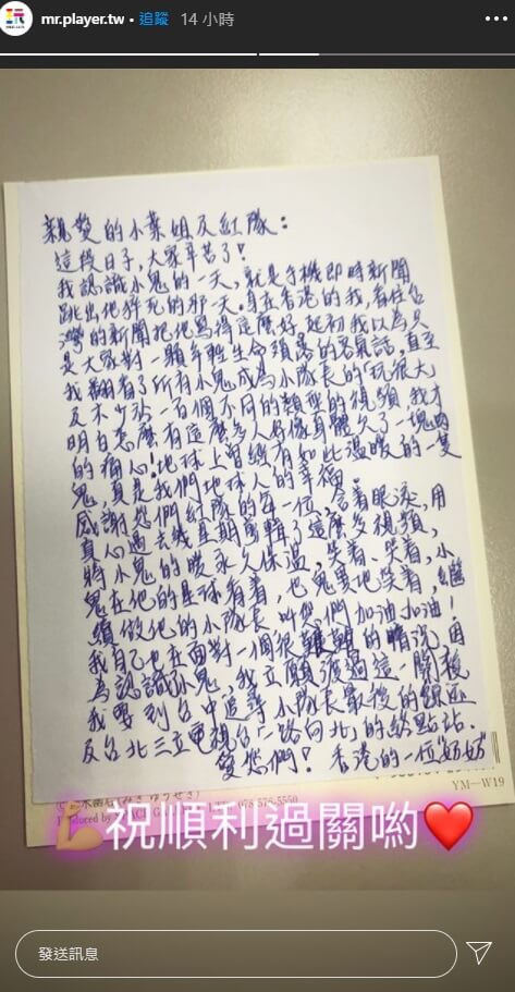 《綜藝玩很大》官方IG最近在限時動態發文,貼出了一名來自香港的奶奶的信件內容,從照片中可以看到,奶奶表示自己在認識小鬼的第一天,其實是手機跳出對方死訊的那天,當時看到跟小鬼有關的新聞,幾乎通通都是好評!她也想說這應該都是客氣話,沒想到她翻了小鬼在《玩很大》的片段以及100個以上的相關影片後,忍不住驚呼「我才明白有這麼多人好像身體欠了一塊肉的痛心!」