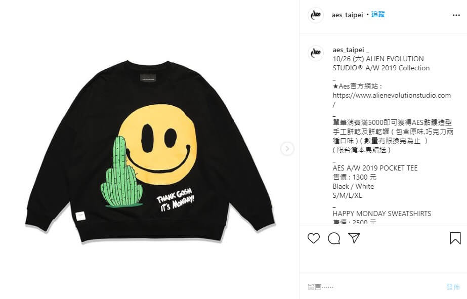 只是在Sam的發文中,可以看到除了原本品牌的衣服之外,還有另外一個粉絲專頁也貼出一樣的笑臉搭配仙人掌的衣服,讓Sam直接在限動中寫下,「做牌子的有點創意好嗎?」,還貼出一個嘔吐的表情,讓不少網友們看了照片之後,都紛紛發現,另外一個品牌的設計跟小鬼潮牌的設計幾乎是一模一樣,只是右下角的英文是寫著「感謝老天,是個美好的日子」,和小鬼潮牌的不太一樣。