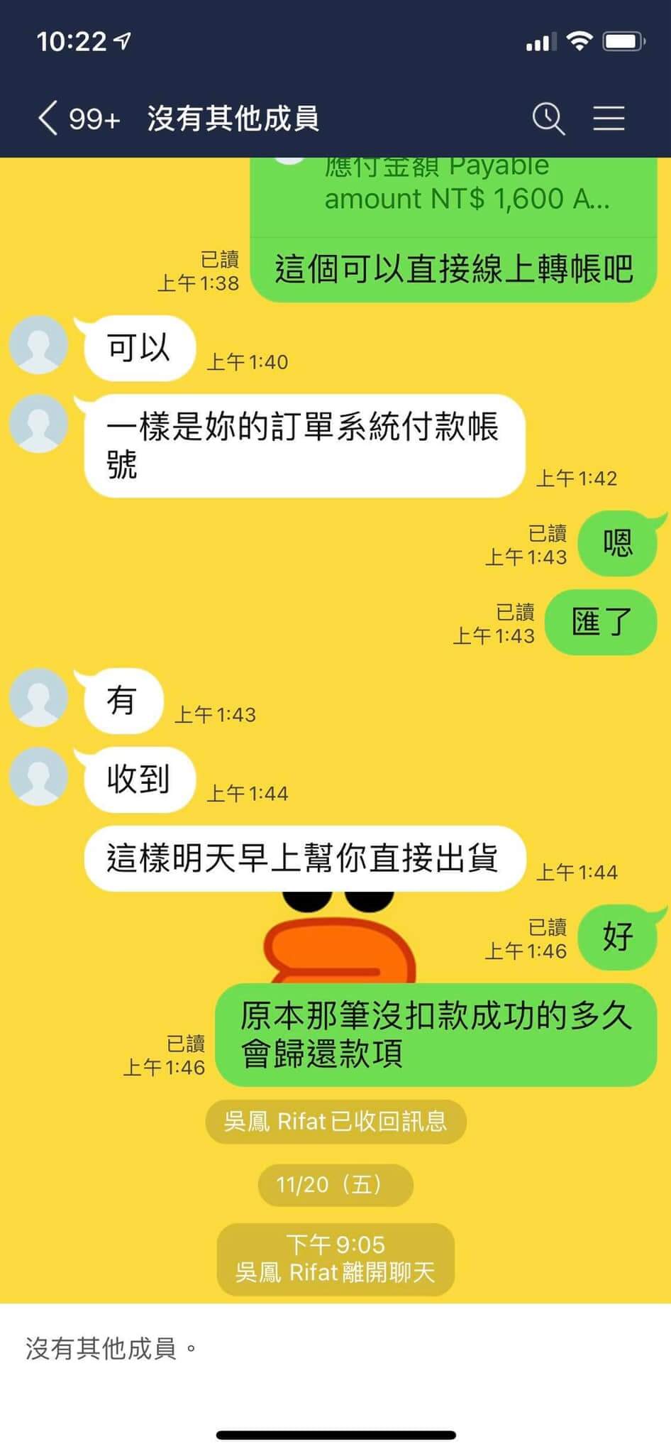 從截圖畫面中可以看到,對方詐騙的手段非常老練,除了會告知對方如何匯款之外,還會安撫買家不需要擔心個資外洩,甚至還很熟悉吳鳳的背景,跟買家說「我如果沒有立即回覆,就是在顧小朋友,待會就馬上會回覆您!」讓買家深深以為對方真的就是吳鳳。