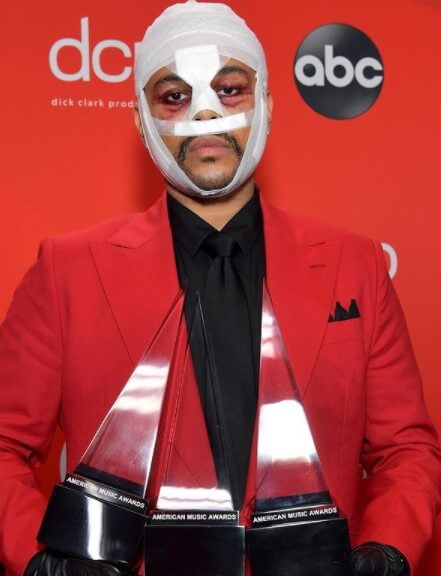 威肯在頒獎典禮上表演了〈In Your Eyes〉和〈Save Your Tears〉兩首歌曲,值得注意的是,他為了延續專輯MV的風格、宣揚酒醉駕駛的危害,他以「鼻青臉腫」、「頭部包繃帶」的造型現身,引起激烈的討論!網友們都紛紛表示,「這造型太狂了」、「笑死(LOL)」,甚至也有人留言說,「今天完全被取悅了!」、「這造型非常有意義耶!」而威肯在得獎時,也不忘感性的說,「上一次我是從王子(Prince)的手中接下這個獎,他就是讓我持續在R&B這個領域裡不斷挑戰的原因,我想將這個獎獻給他!」