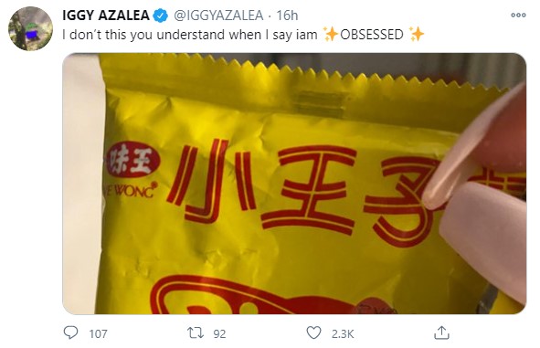 有著「嘻哈天使」稱號的澳洲饒舌歌手「伊姬阿潔莉亞(Iggy Azalea)」在2014年時,因一首單曲《Fancy》在全球竄紅,當時在美國告示牌奪下漂亮成績,甚至還因此得到「女版阿姆」的稱號。而擁有廣大粉絲的伊姬經常會在社群平台上分享日常,像是最近她也在推特上曬出台灣零食「王子麵」,瘋狂大讚這款平民美食「好吃到令人著迷」!